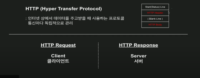 - 웹상에서 일어나는 요청과 응답의 과정은 하나의 규약을 통해 이루어짐 = HTTP