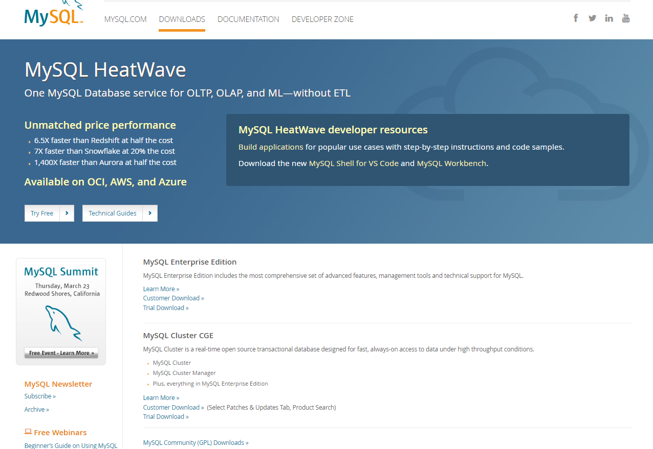 [MySQL] MySQL 페이지 다운 가장 아래 MySQL Community (GPL) Downloads 2. MySQL Installer for Windows 3. windows (x86, 32-bit),MSI Istaller a37.3M 다운로드 4. No thanks, just start my download. 로 다운 DB/MySQL Workbench 2023.03.26